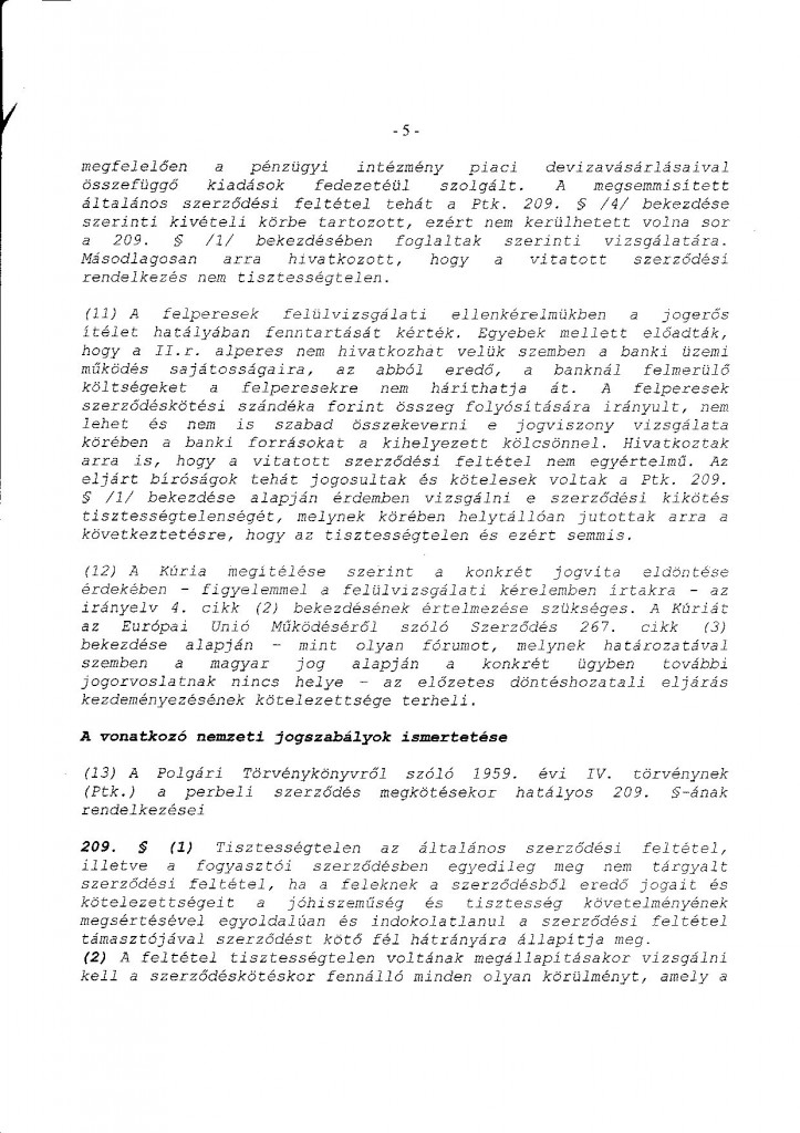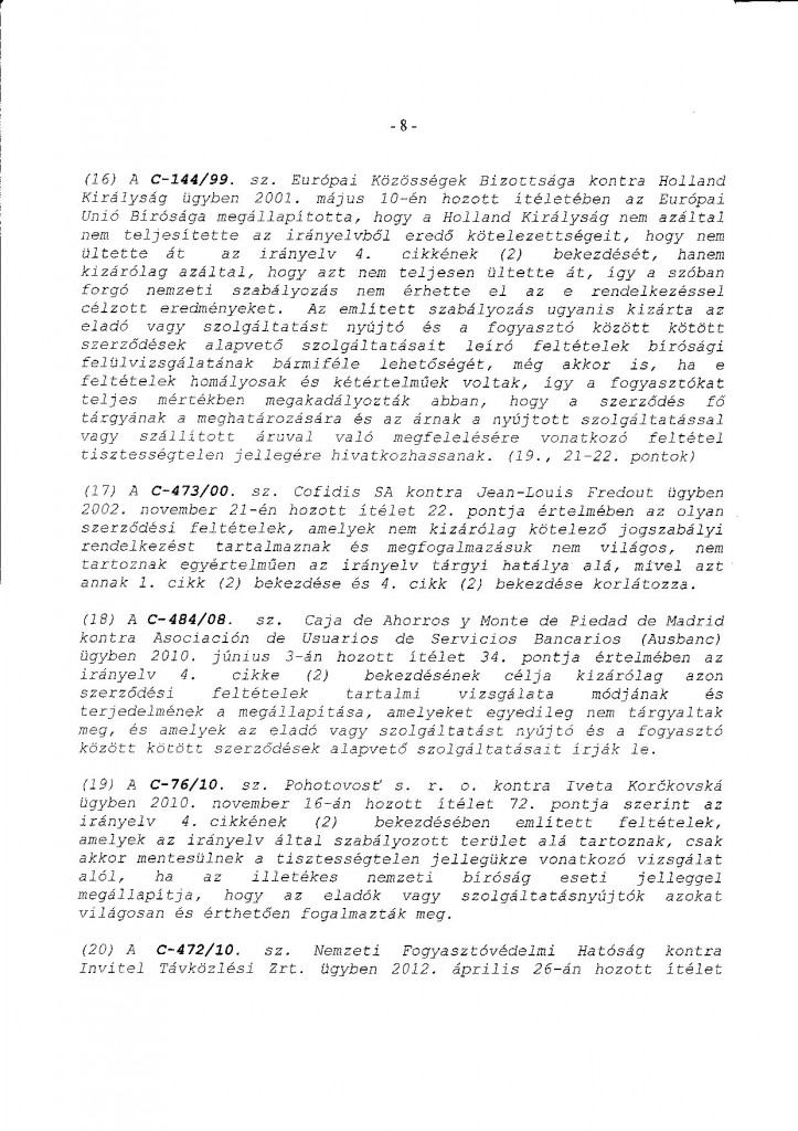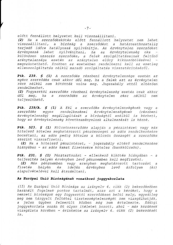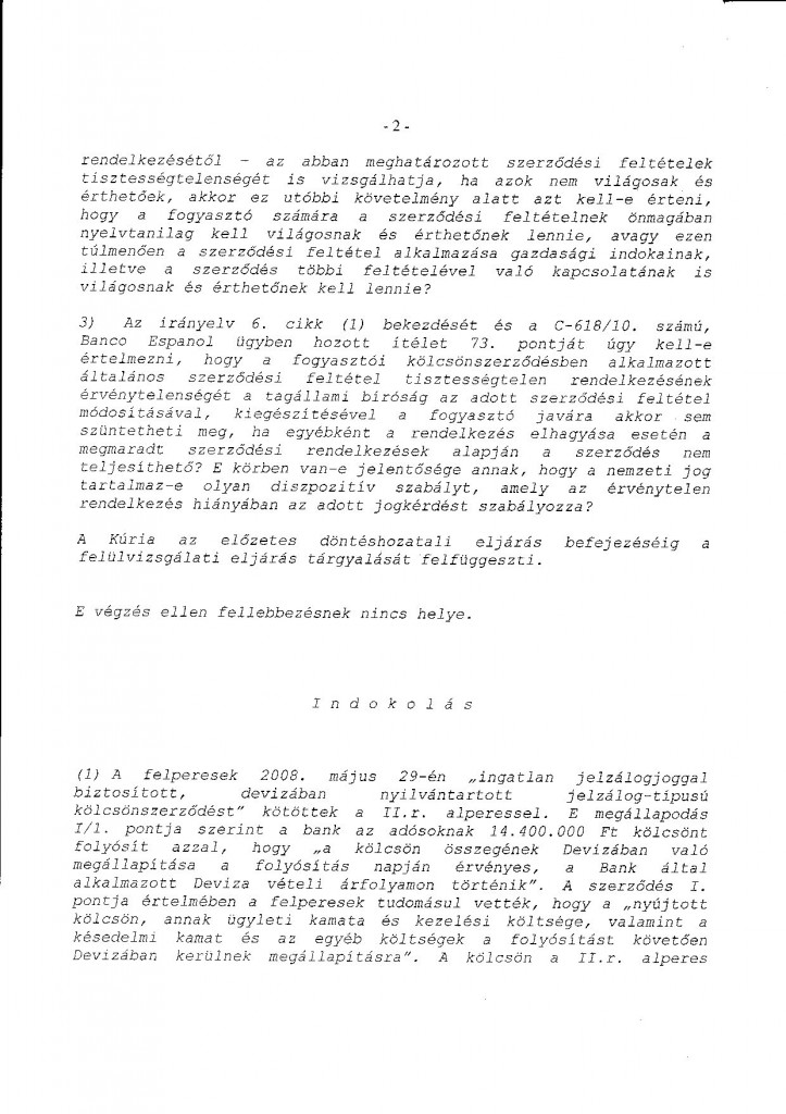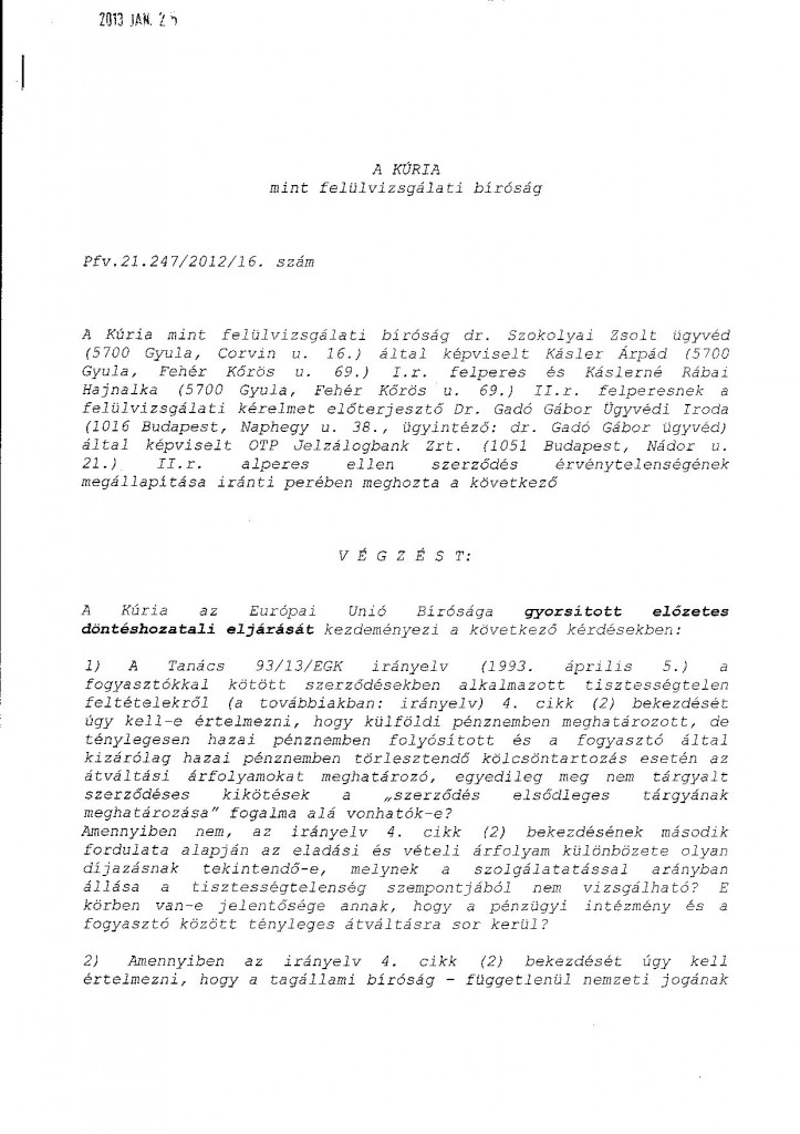 »(33) A Kúria tehát nem önmagában az ilyen perek, a perek által érintett jogalanyok nagy száma miatt indítványozza a gyorsított eljárás elrendelését, hanem a magyar gazdaság egészét, a magyar bankrendszer működését alapvetően és közvetlenül befolyásoló hatása miatt, amely a magyar lakosság jelentős százalékának egzisztenciáját is közvetlenül érinti.«