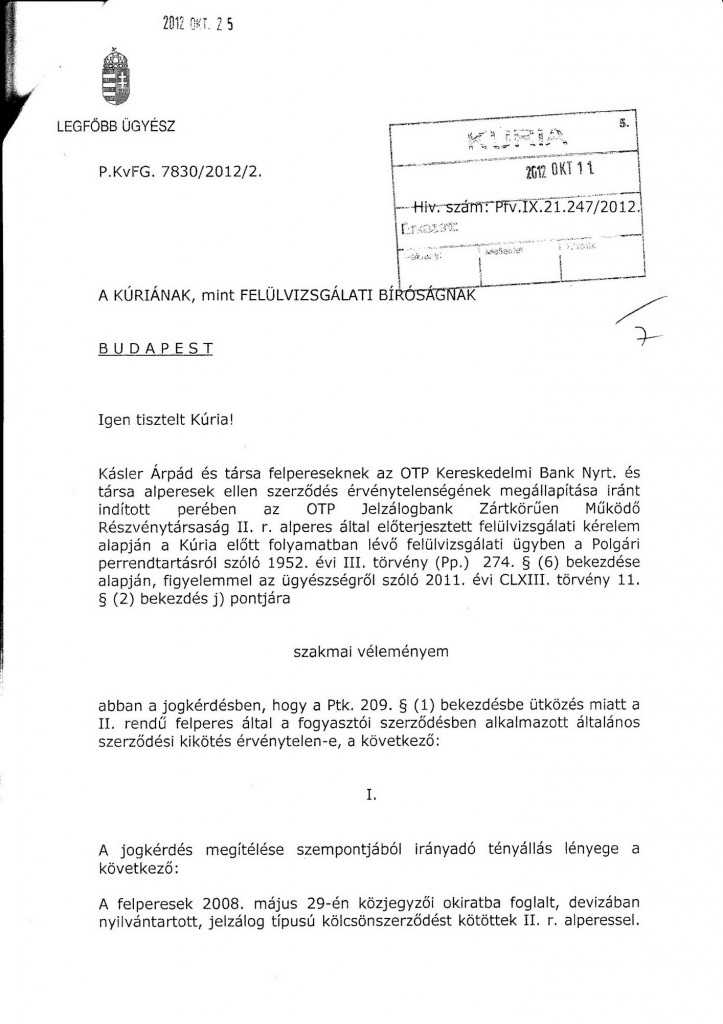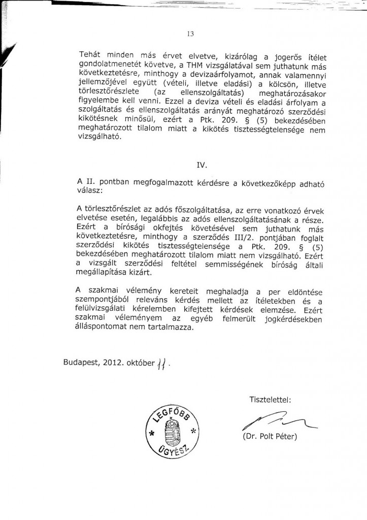 Ígéretemhez híven közzé teszem a Legfőbb Ügyész, dr. Polt Péter, Kúriához címzett szakmai véleményét, a deviza kereskedelmi árrését illetően.