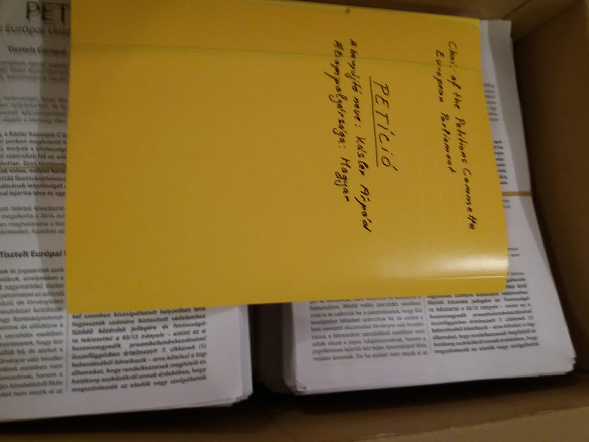 Több ezer honfitársammal egyetemben kérjük a tisztelt Európai Unió Parlamentjét, az ügy soron kívüli, minden részletre való megvizsgálását és jogellenes végrehajtások azonnali felfüggesztését. Az Európai Bíróság, a Kásler házaspár C-26/13. számú ügyében hozott ítélet és az arra épülő, ugyancsak Kásler perben meghozott ítéletből megalkotott 2/2014. számú Kúria PJE határozata mondja ki, melyek a tisztességtelen kikötések, amelyeken alapulóan a pénzintézetek költségeket számoltak fel az adósok kárára, kötelezően előírtan és a felmondás terhe mellett behajtottan. Ezen tisztességtelen tételek, 10-20 vagy akár 30 havi törlesztőrészletet is kifutottak volna, melyet határidő előtt elvontak az adósoktól a pénzintézetek, ezzel maguk taszították fizetésképtelenségbe az adósokat, megteremtve bankok számára, a szerződés felmondásának lehetőségét és a 10-20 vagy 30 évre szóló visszafizetési határidőket, ezzel azonnal lejárttá téve és egyösszegben követelve.
