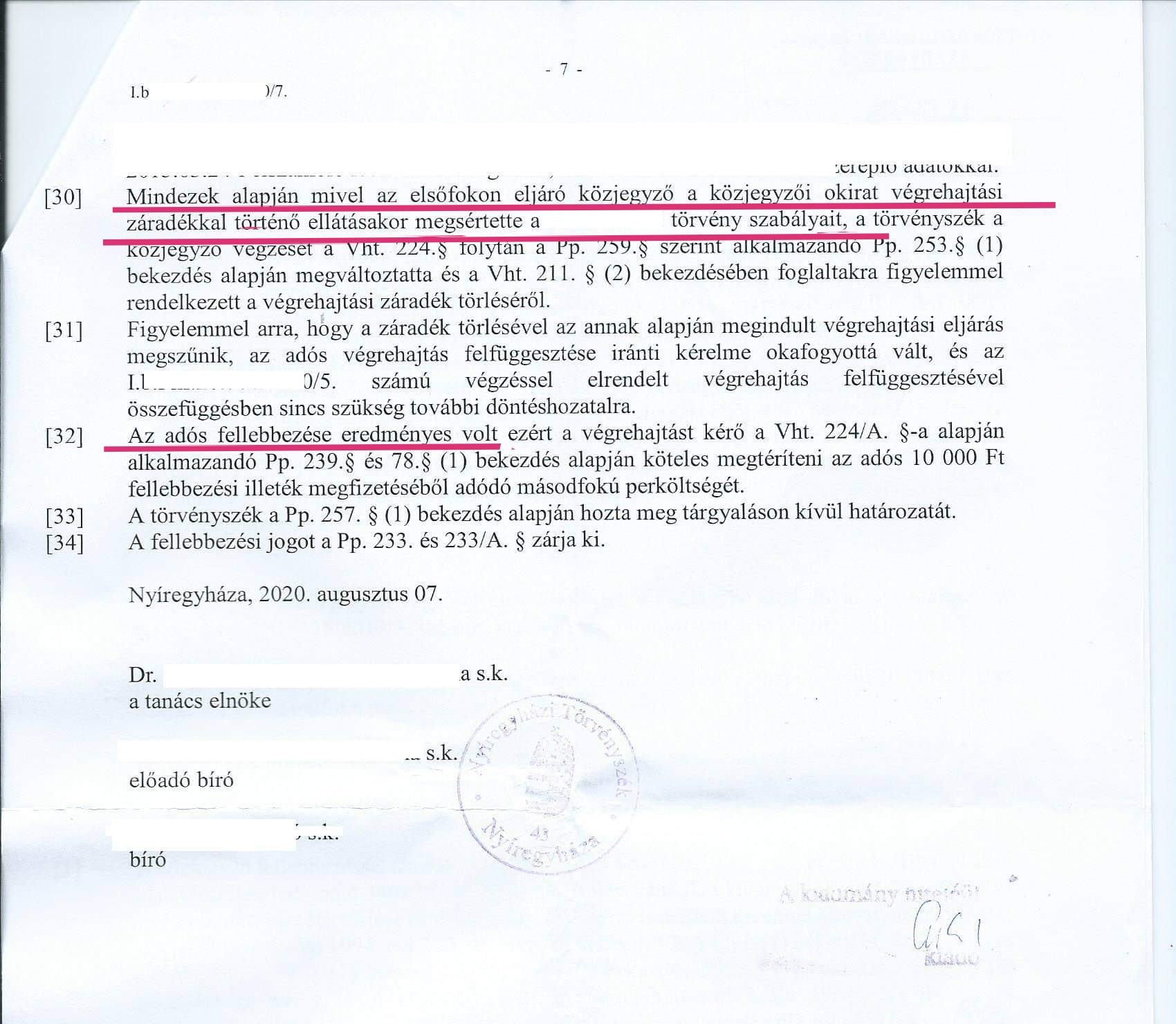 Részletek a Nyíregyházi Törvényszék végzéséből: